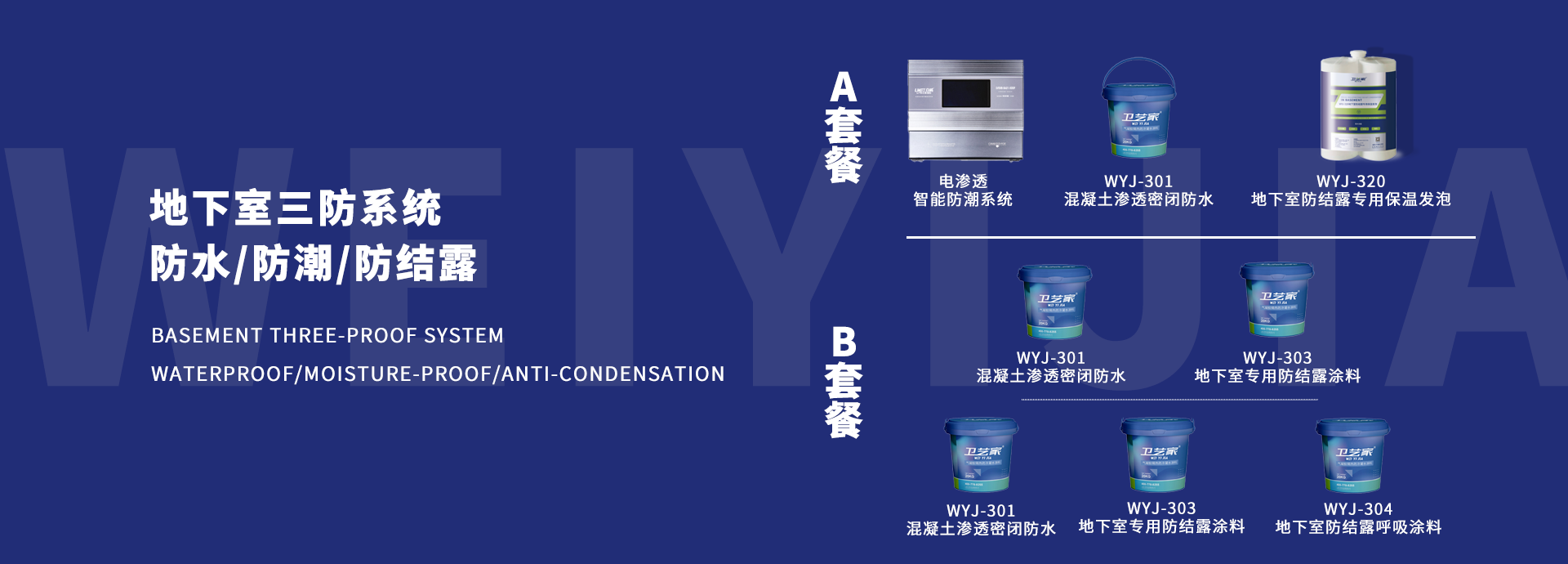 WYJ-地下室防水防潮防结露产品组合,地下室防水防潮防结露,采用A套餐和B套餐。